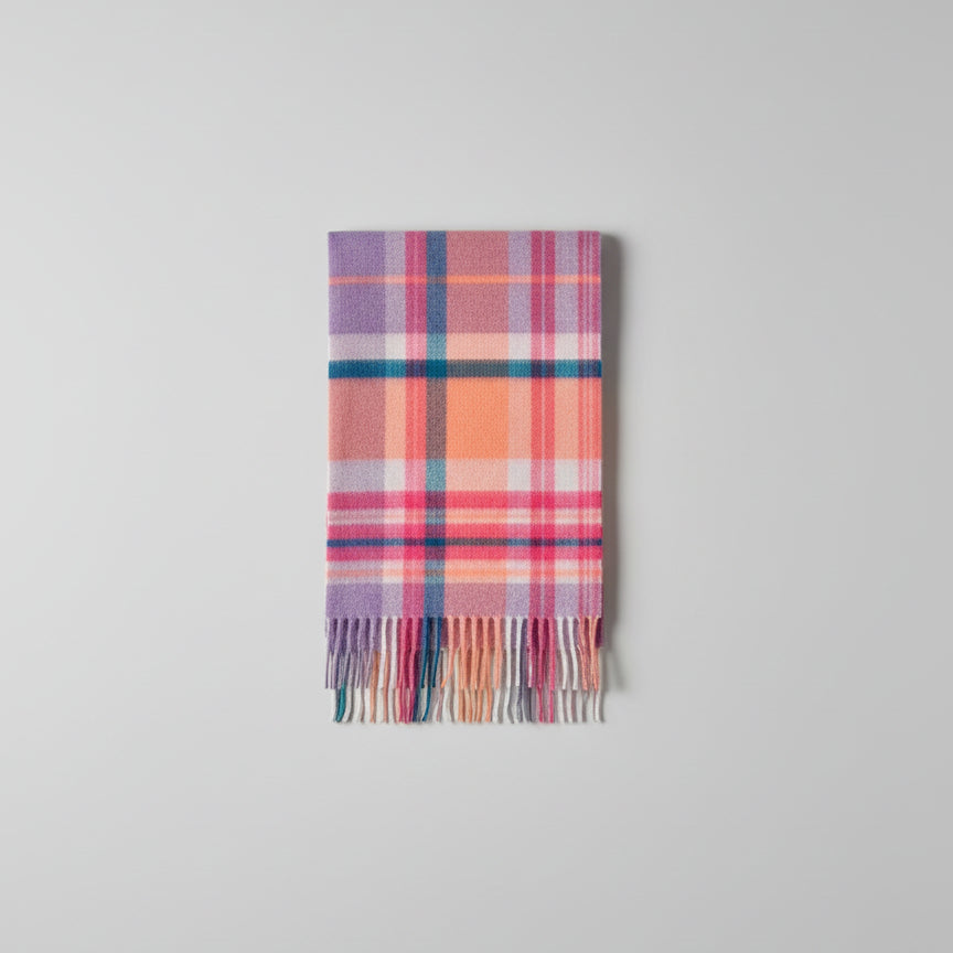 - Sunset Tartan Slim Cashmere Scarf: A cozy medley of apricot, lilac, rose, and soft blue plaid inspired by the glow of winter sunsets. Bright yet balanced, it brings cheerful color to cold days.